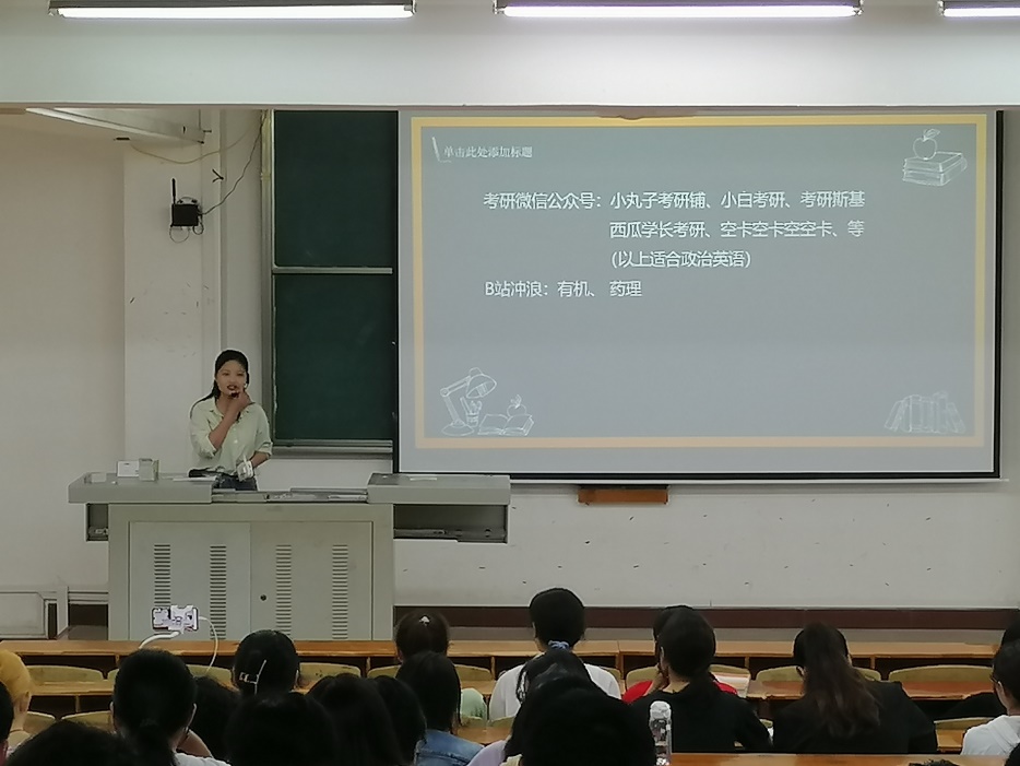 bevitor伟德国际1946官网2021届毕业生共有22人考上研究生,此次分享会邀请到考上武汉理工大学的熊贝、沈阳药科大学的冯琪勋等六位同学进行经验分享。他们根据自身经验从择校、信息收集方法、备考经验和考研感受等方面为同学们带来详细的经验交流,引导同学们合理择校,同时告诉同学们应该如何应对考研疲倦期,如何疏导压力,以最佳状态迎接考试。为未来有考研想法的同学拨开迷雾,点亮考研道路的明灯。