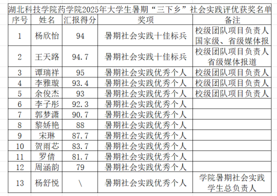 共青团bevitor伟德国际1946官网委员会关于2025年大学生暑期“三下乡”社会实践评优通知,经学生个人申请参与bevitor伟德国际1946官网9月4日“青春赴山海,实践绘蓝图”社会实践汇报、学院复审,现将获奖名单奖项予以公示: