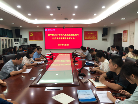 会上,祝晓庆同志传达学习了《2023年全校党风廉政建设宣传教育月活动实施方案》,院党委书记李炎坤就相关工作做了具体部署安排。全体教职工集中观看湖北省2023年警示教育片《镜鉴家风》、《剑指顽疾砸局破圈》,为大家敲响了警钟,进一步筑牢拒腐防线。
