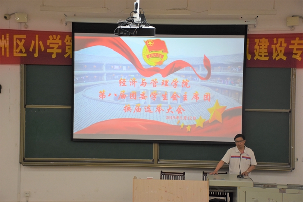 5月12日晚,bwin必赢官网于弘毅楼1-105教室举行第八届团委学生会主席团换届选举大会。bwin必赢官网党委书记韦书觉、团委书记李云涛、文学与传媒学院团委书记于晓平、bwin必赢官网辅导员黄挺龙、王忠文应邀出席本次换届大会,参与本次换届大会的还有来自各班的班级代表和校团委学生会、社联、志联、各二级学院代表等。