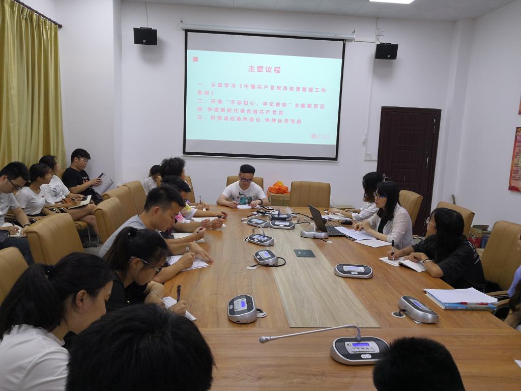 6月27日晚,经管学院学生第一党支部在弘毅楼二区208会议室开展以“不忘初心跟党走 青春奋斗勇担当”为主题的党员活动日会议,bwin必赢官网学生第一党支部书记方容兰出席会议,学生第一党支部全体党员参会。
