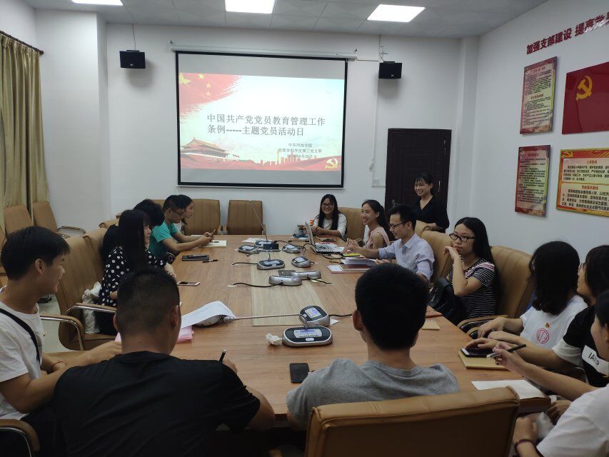 本次会议分为三个部分进行。首先,梁英同志强调了学校党委关于学习领会《条例》通知的精神,进而学习了《条例》的内容和意义。其次,我们还开展了支部党员交流会,由毕业生党员吴大展同志和张许燕同志分享实习的经历和学习感悟以及事业单位考试等面试的注意事项,并告诫新党员同志要少一点抱怨,多点付出。最后,由支部书记黄挺龙老师分享生活学习以及工作的经历,并告诉党员同志们要有信仰、坚持努力完成每一个目标、积极主动付出,同时要搞好支部内部建设和不断学习党规党章等。