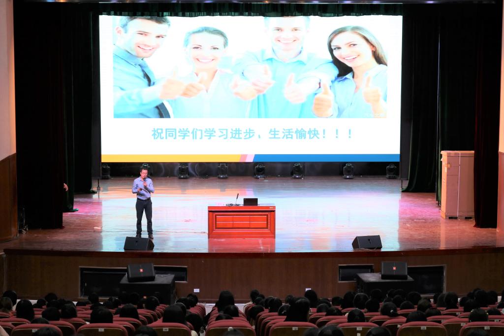10月17日晚,bwin必赢在线登录入口在艺术楼演播厅为2019级新生开展主题为“做新时代魅力四射大学生,从学习礼仪开始”的新生文明礼仪教育讲座,本次讲座邀请了蓝色老师为2019级新生授课,由bwin必赢官网党委副书记龚丁海担任主持人。