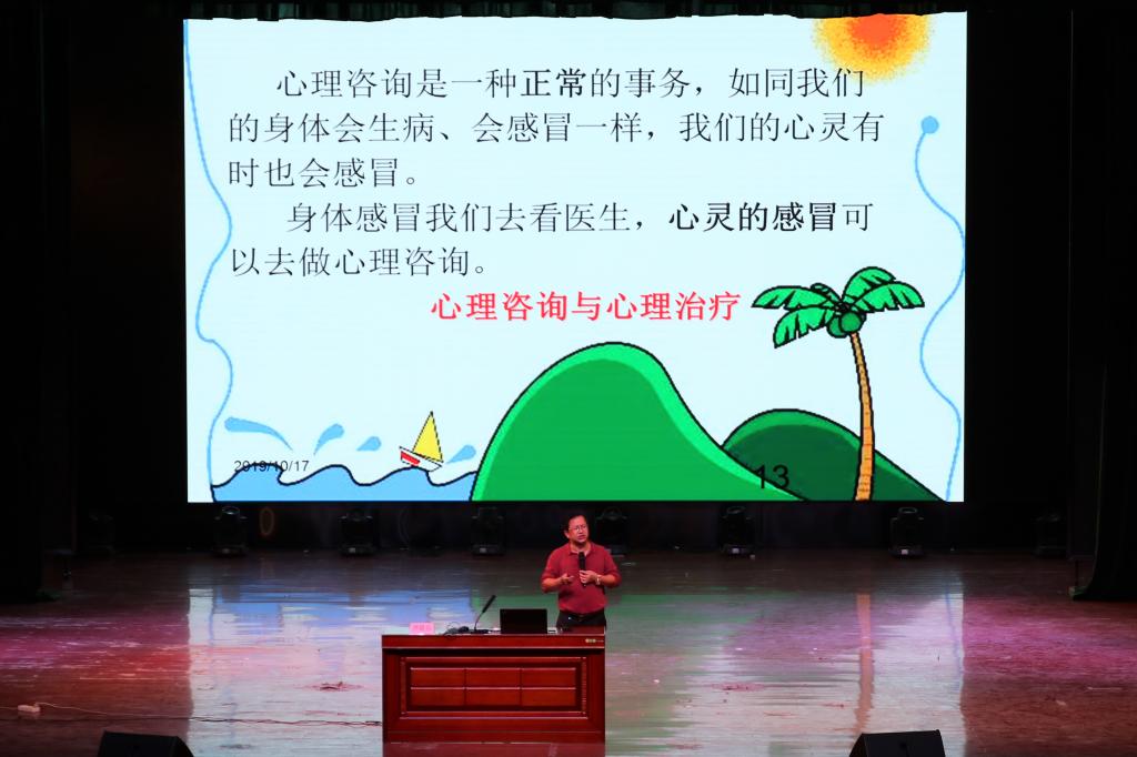 10月17日晚,bwin必赢官网在艺术楼演播厅为2019级新生开展“传递正能量,关注‘心’健康”的心理健康教育讲座,本次讲座邀请了尹晨祖副教授为2019级全体新生授课,由bwin必赢官网团委书记李云涛担任主持人。