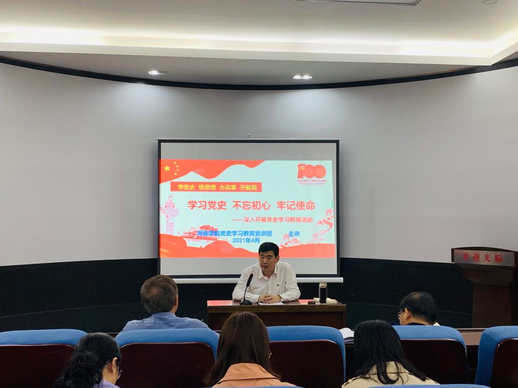 黄小敬从认真把握党史学习教育的总体目标、深刻领会习近平总书记关于党史的重要论述、全面了解党的百年奋斗的光辉历程和历史性贡献、深刻感悟中国共产党的初心和使命、贯彻落实党史学习教育的措施要求五个方面进行详细解读和阐述。同时强调,党史学习教育“正当其时,十分必要”。全党同志要做到学史明理、学史增信、学史崇德、学史力行,切实将党史学习教育与学院中心工作相结合,掀起学党史、悟思想、办实事、开新局的热潮;将党史学习教育与立德树人相结合,教育引导学生知史爱党、知史爱国,更好传承红色基因、牢记初心使命。