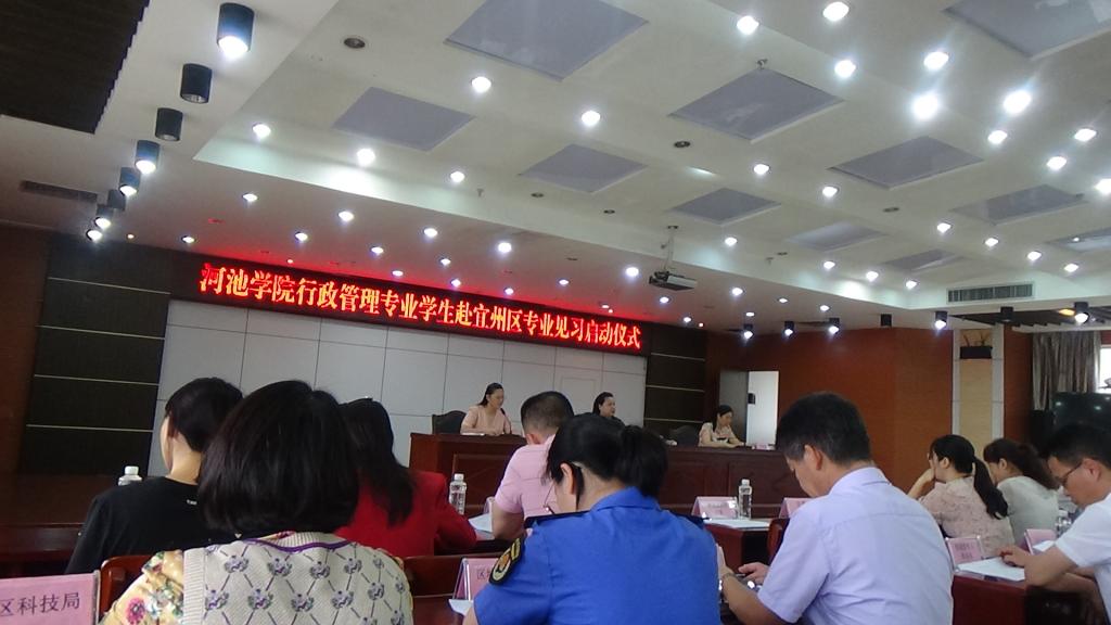 5月31日上午,河池学院bwin必赢在线登录入口与宜州市政府合作的“2021年河池学院bwin必赢在线登录入口行政管理专业学生赴宜州区直各党政部门见习活动启动仪式”在宜州区财政局七楼会议室举行。宜州区高校合作和对外合作办公室主任沙燕双,bwin必赢官网副院长肖海燕,行政管理系主任李荷英,专业教师谭玉龙、尹桂莲等以及接受见习生的宜州区直43个单位领导出席本次活动。启动仪式由李荷英主持。
