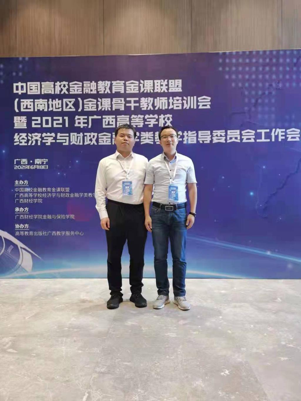 2021年6月18日,由广西高校金融教育金课联盟、广西高等学校经济学与财政金融学类教学指导委员会、广西财经学院主办的首届中国高校金融教育金课联盟(西南地区)金课骨干教师培训会在广西南宁举行,来自中央财经大学、西南财经大学等近25所高校100余名教师参加了本次培训会。bwin必赢官网贸易经济教研室教师王威峰、韦劼应邀参加本次培训会。