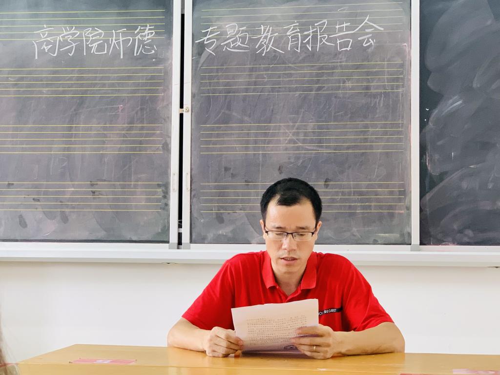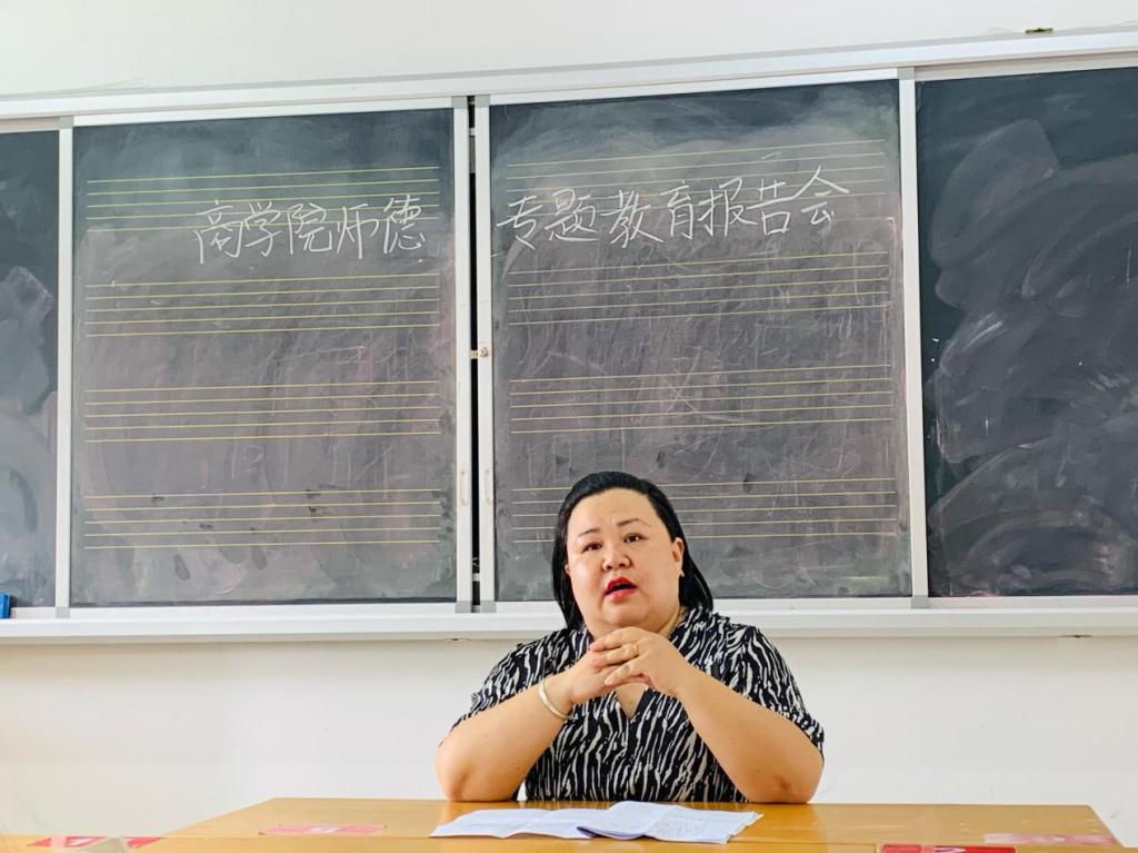 6月23日下午,bwin必赢在线登录入口全体教职工于艺术楼404召开师德专题报告会,bwin必赢官网党委副书记龚丁海,副院长韦福巍、肖海燕以及全体教职工参加会议。