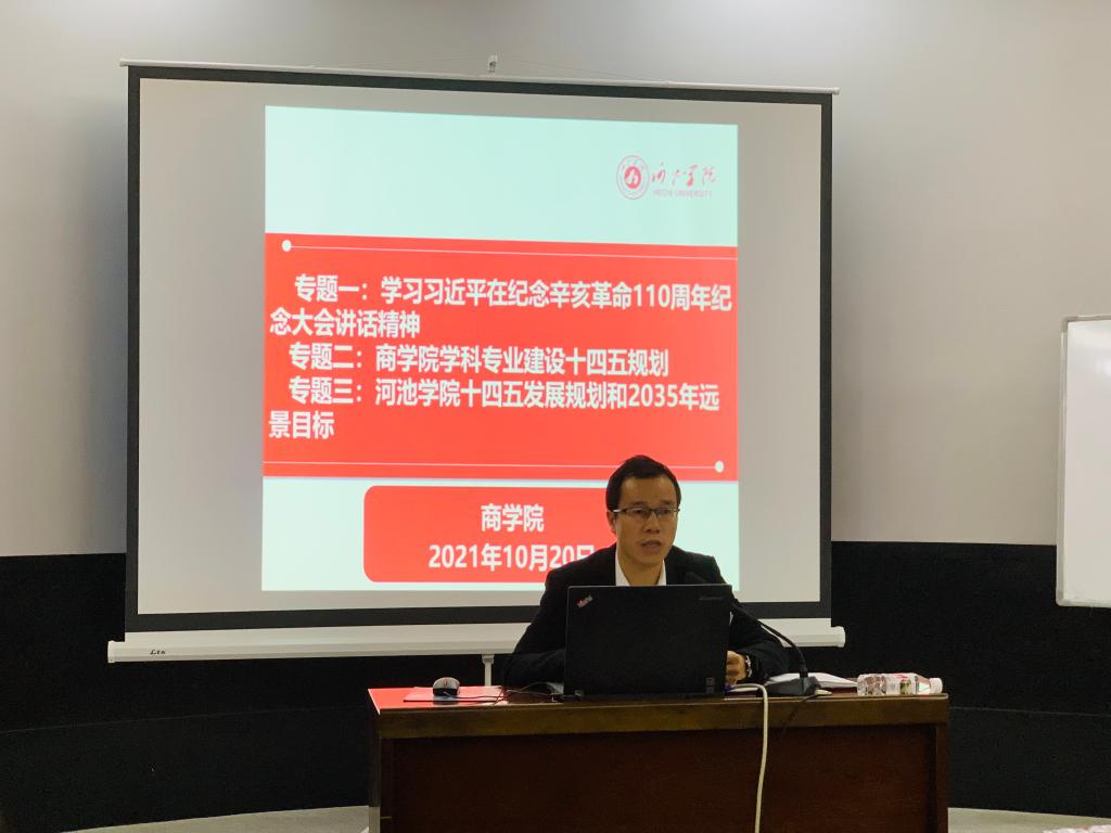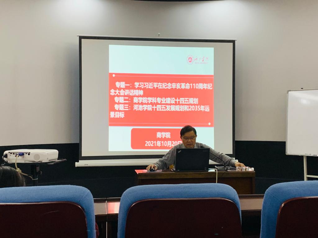 为进一步提升教师思想政治素养,10月20日下午,bwin必赢在线登录入口于弘毅楼3-504组织召开“学习习近平总书记在纪念辛亥革命110周年大会上重要讲话”会议,会议由bwin必赢官网党委书记韦书觉主持,全体教职工参会。