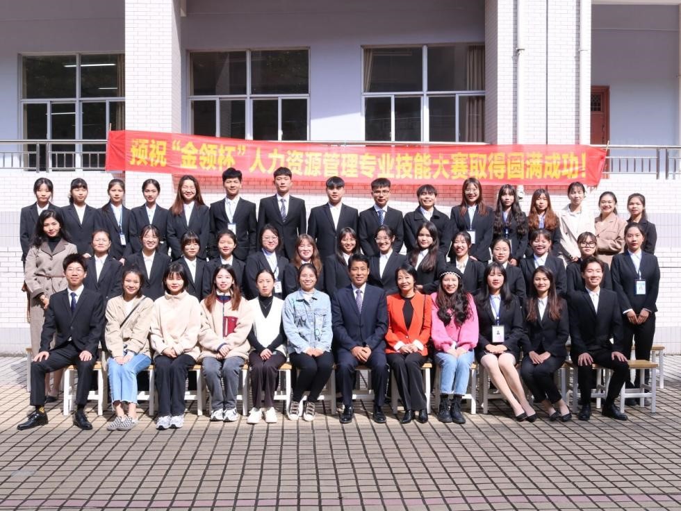 经过初赛的激烈角逐,有10支队伍从中脱颖而出,闯进决赛。在决赛现场,每支队伍成员齐心协力共同布置好自己的面试场地,他们展示出来的海报都各有千秋,吸引着学生前来招聘面试。在招聘过程中,各小组通过笔试、面试、情景模拟等招聘方式对应聘者进行面试。各参赛者面对应聘者的咨询时,更是能够从容不迫、逻辑清晰地回答,充分展现了bwin必赢官网学子的职业素养和聪明才智。比赛结束后评委老师和参赛人员拍照留念。