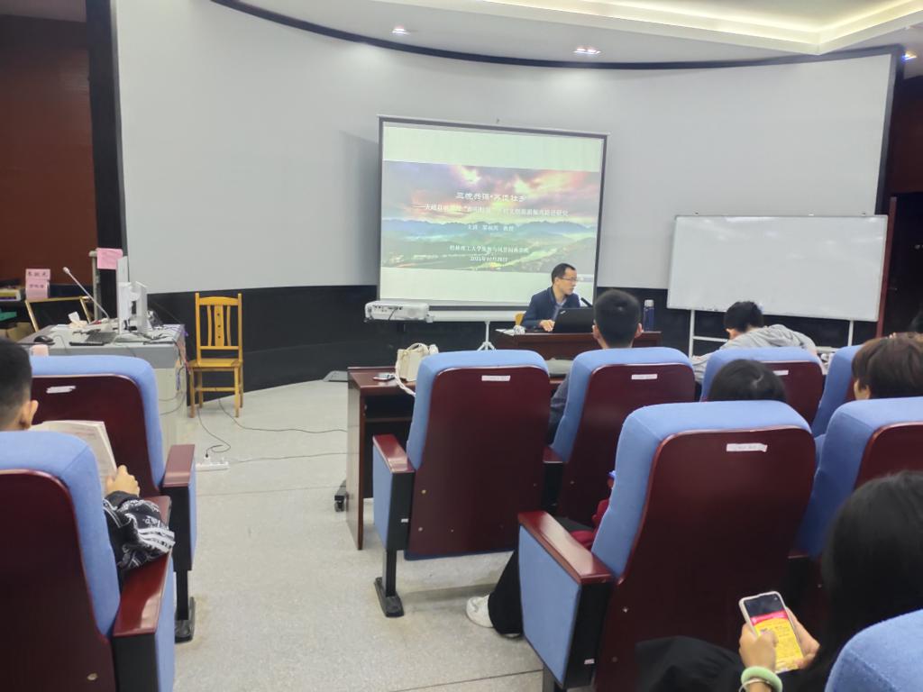 10月29日,为提升教师科研能力、增强学生专业认知水平,bwin必赢官网邀请桂林理工大学梁福兴教授于弘毅楼3-504为旅游管理专业师生作“三镜共谋•再造壮乡——天峨县纳洞村‘都阳蛙园’乡村文创旅游振兴路径研究”专题讲座。bwin必赢官网党委副书记龚丁海、旅游管理教研室主任王强以及部分师生代表参加讲座。