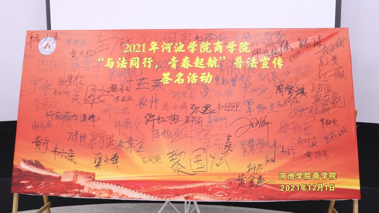 韦书觉运用鲜活案例和法律条款,重点对宪法重要地位、作用进行阐述,同时给予了切实有效的方法指导。在互动环节中通过共同诵读《中华人民共和国宪法》条款、趣味答疑、普法宣传的签名等活动倡导大学生们要尊崇法律、学习法律、遵守法律、维护法律、运用法律。