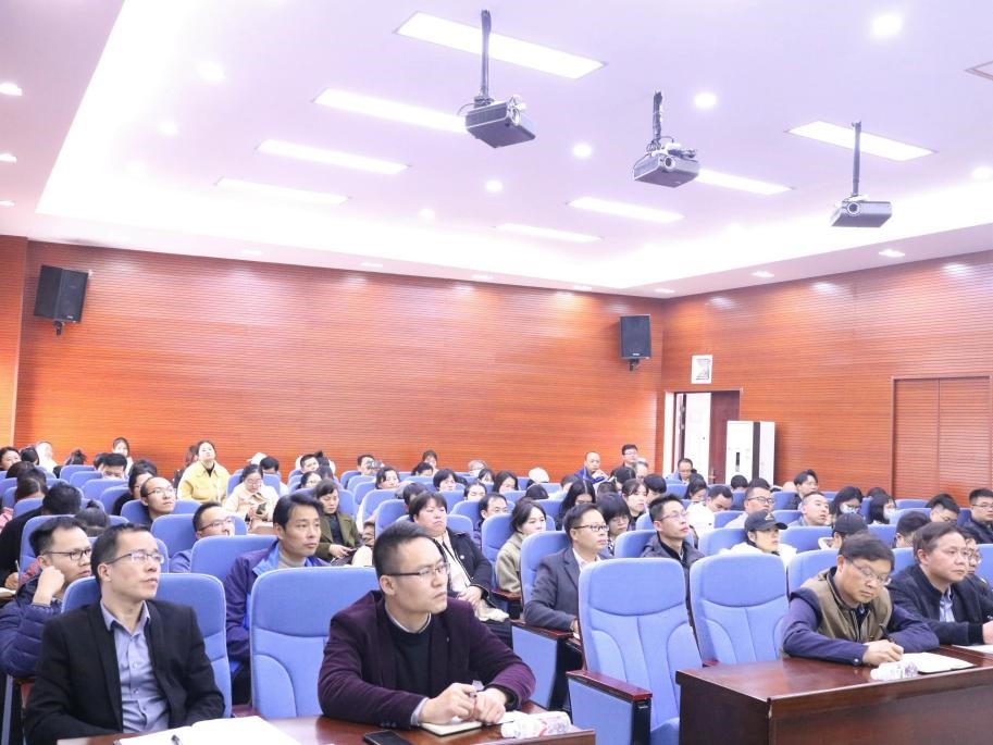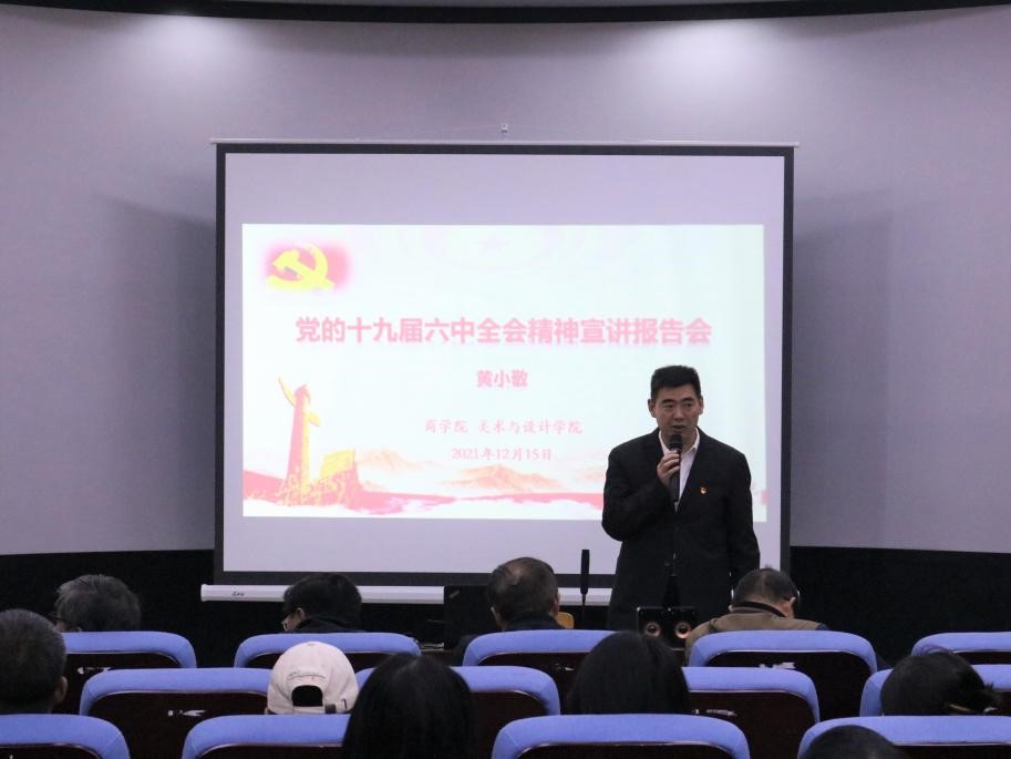 12月15日下午,bwin必赢在线登录入口于弘毅楼3-504报告厅举行党的十九届六中全会精神宣讲报告会。学校党委常委、纪委书记黄小敬作宣讲报告,bwin必赢在线登录入口党委书记韦书觉主持,全体教职工及学生党员代表聆听宣讲。