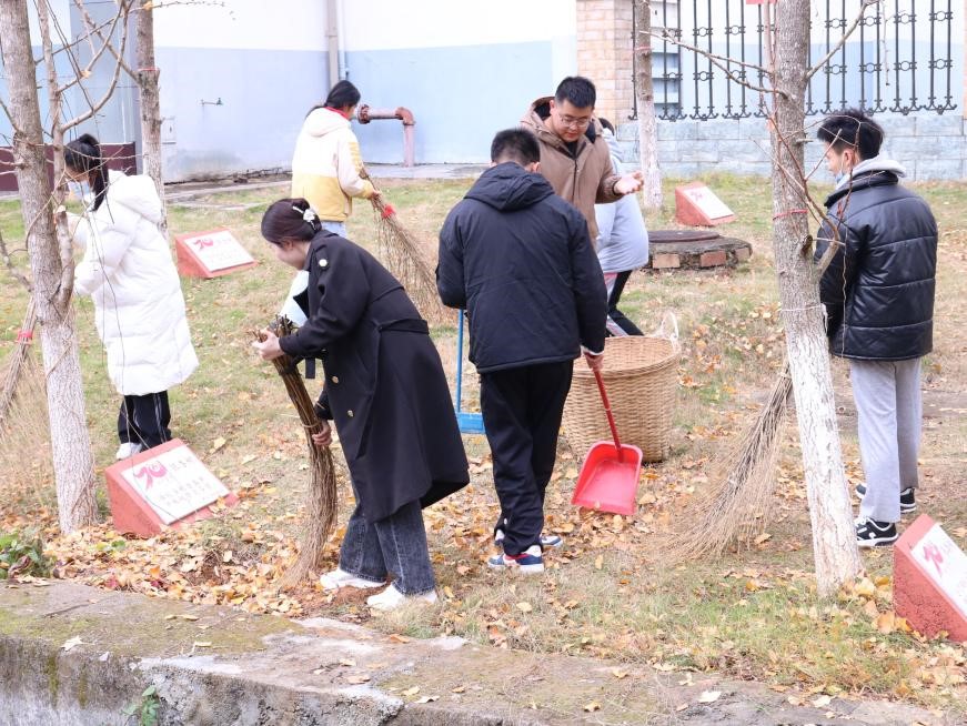 活动中,同学们划分为五个小组,每个小组分工明确、勤劳认真、团结协作,主要针对负责区域的塑料袋、杂草及掉落的树枝、树叶等进行全面清理,不留一处死角,切实将“为群众办实事”落到实处,为我校师生提供了一个优美、舒适的生活与学习环境。