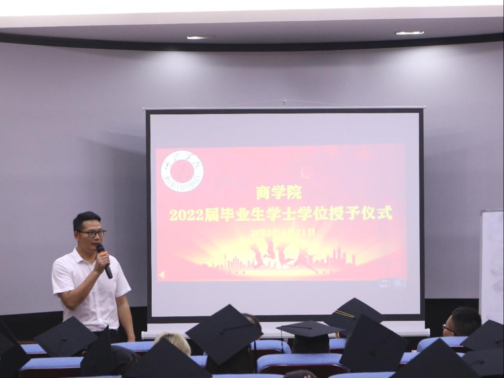 bwin必赢在线登录入口2022届毕业典礼于6月21日在弘毅楼3-504报告厅顺利举行。bwin必赢官网党委书记韦书觉,院长覃举东,党委副书记蓝振榕,各教研室主任以及辅导员出席本次典礼。典礼由蓝振榕主持。