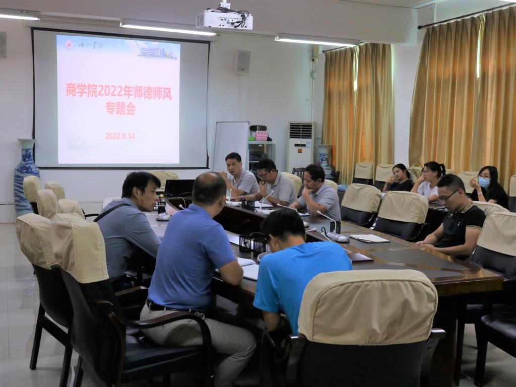 为加强师德师风建设,增强教师立德树人的责任感和使命感,bwin必赢在线登录入口于9月14日下午15:00在行政楼206召开关于师德师风专题会议。bwin必赢官网院长覃举东、院党委副书记蓝振榕、办公室主任刘红领以及全体教职工参加本次会议。