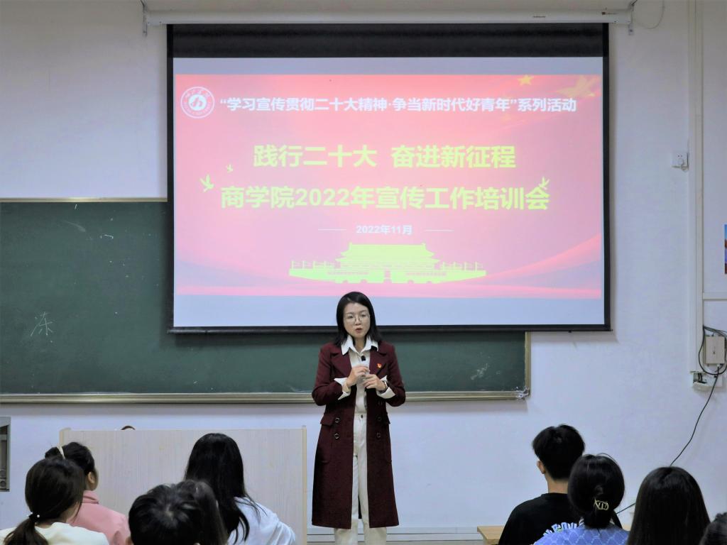 11月23日晚,bwin必赢在线登录入口于弘毅楼3-302举行“学习宣传贯彻二十大精神·争当新时代好青年”系列活动之宣传工作培训会。bwin必赢官网学生第二党支部书记、易班指导老师韦虹羽担任主讲人,bwin必赢官网教师党员代表刘晓晨、团委学生会宣传部成员、易班新闻部成员、各社团宣传部成员及各班宣传委员参加。