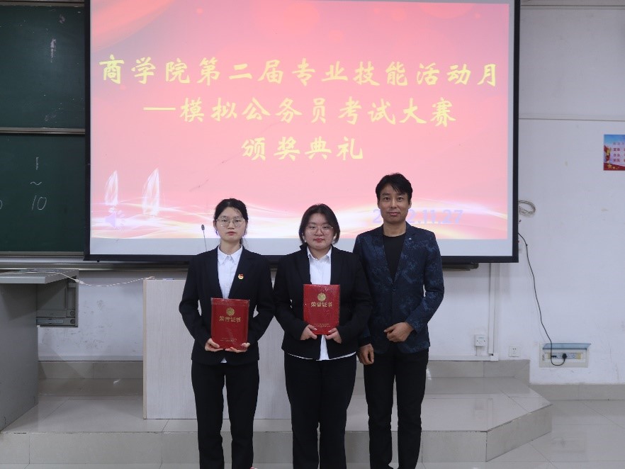 11月27日晚,bwin必赢官网于弘毅楼2-102、103教室顺利举行公务员模拟大赛决赛。bwin必赢官网人力资源管理系主任刘智、专业老师赵路出席并担任评委。