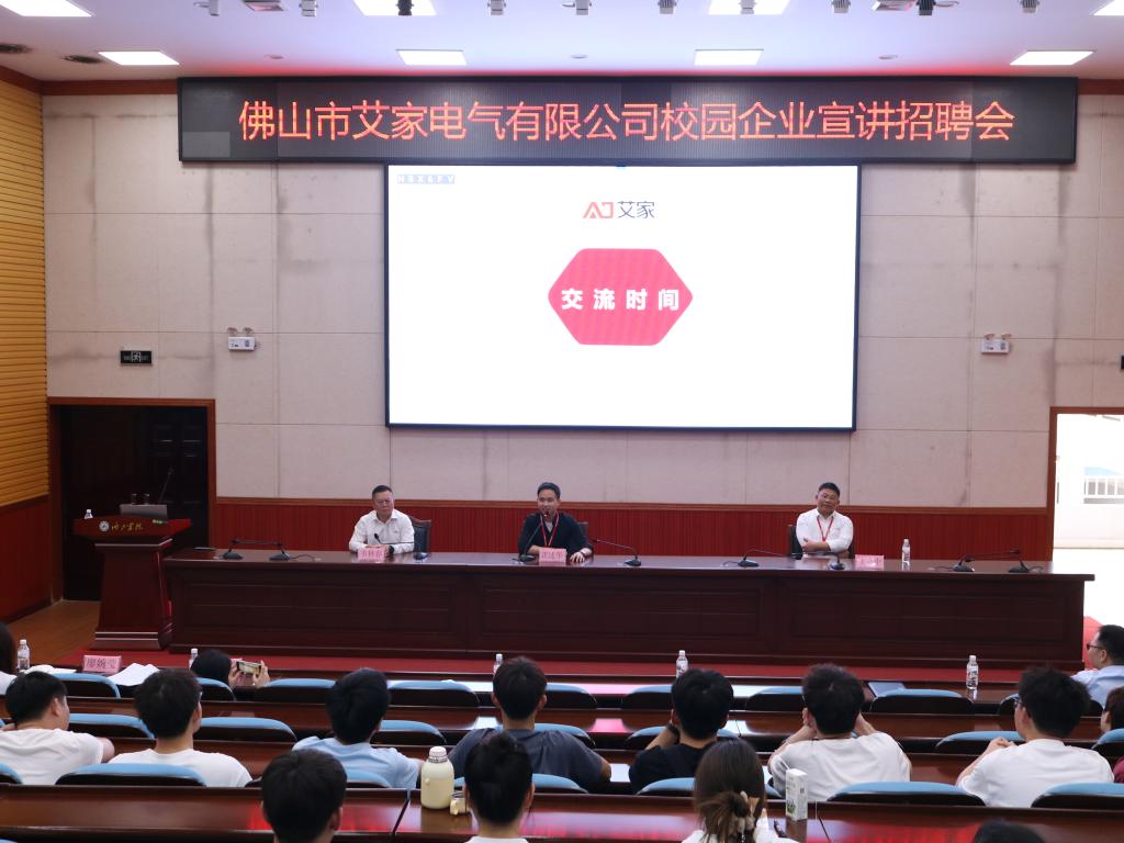 4月13日至14日,bwin必赢在线登录入口特邀佛山市艾家电气有限公司相关负责人到bwin必赢官网开展企业招聘宣讲会。bwin必赢官网党委副书记蓝振榕,团委书记黄挺龙及全体19级、20级毕业生参加会议。