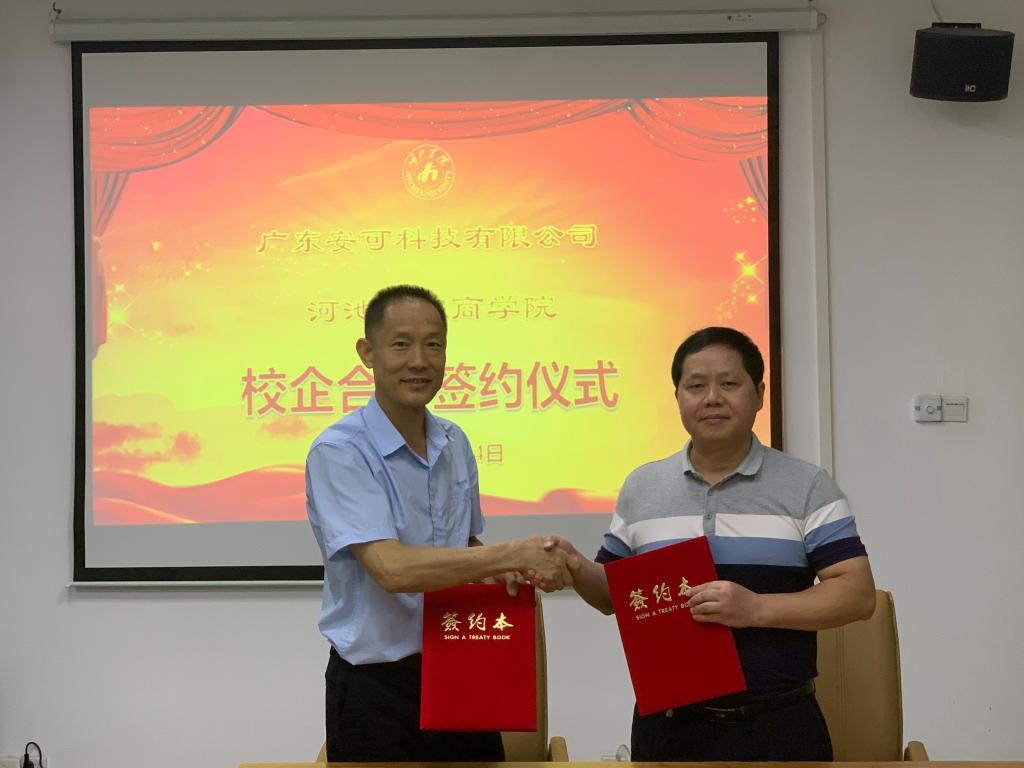 5月24日下午,bwin必赢官网与广东安可科技有限公司于行政楼110室举行校企合作签约仪式。广东安可科技行政部经理王立健,bwin必赢官网院长覃举东、党委副书记蓝振榕,安可科技人事部专员李明、技术部工程师梁锡武参会。仪式由bwin必赢官网院长覃举东主持。