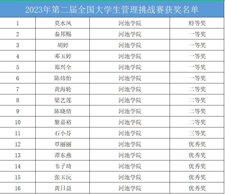 bwin必赢官网学生积极备赛,赛出风采,赛出水平,最终莫水凤同学荣获特等奖;秦邦赐、胡婷、邓玉婷、郑兴全、陈炜怡5位同学荣获一等奖;黄海轮、梁艺莲、陈晓倩、黎嘉裕4位同学荣获二等奖;石小芬同学荣获三等奖;覃丽丽、谭东艳、韦子琦、张玉沅、黄日益5位同学荣获优秀奖。