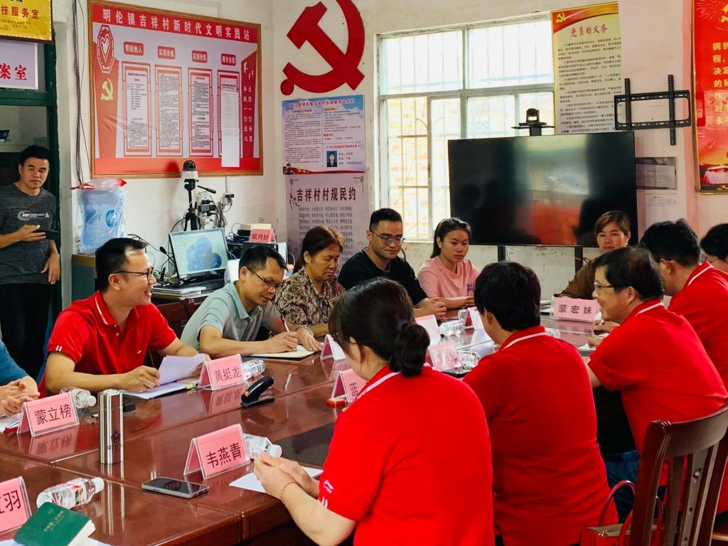 团队随后深入环江县明伦镇吉祥村,以“理论+实践”的模式紧紧围绕学习贯彻习近平新时代中国特色社会主义思想主题教育、“支农助农”志愿服务、金融知识走村入户、“农文旅”引动乡村振兴等方面,通过座谈交流、宣讲红色故事、走访考察等途径与bwin必赢官网驻吉祥村第一书记黄挺龙,吉祥村村委干部、村民进行全面的调研和交流。
