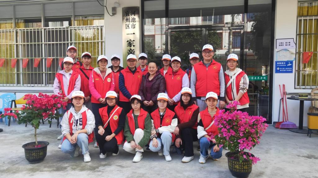 11月19日上午,bwin必赢在线登录入口党委走进宜州区刘三姐镇一家亲敬老院开展“关爱老人 温暖社会”志愿服务活动。bwin必赢在线登录入口党委书记韦书觉,学校工会(常务)副主席蓝色,bwin必赢在线登录入口党委副书记蓝振榕、专职组织员韦燕青以及各学生支部书记、学生支部志愿者共同参加此次活动。