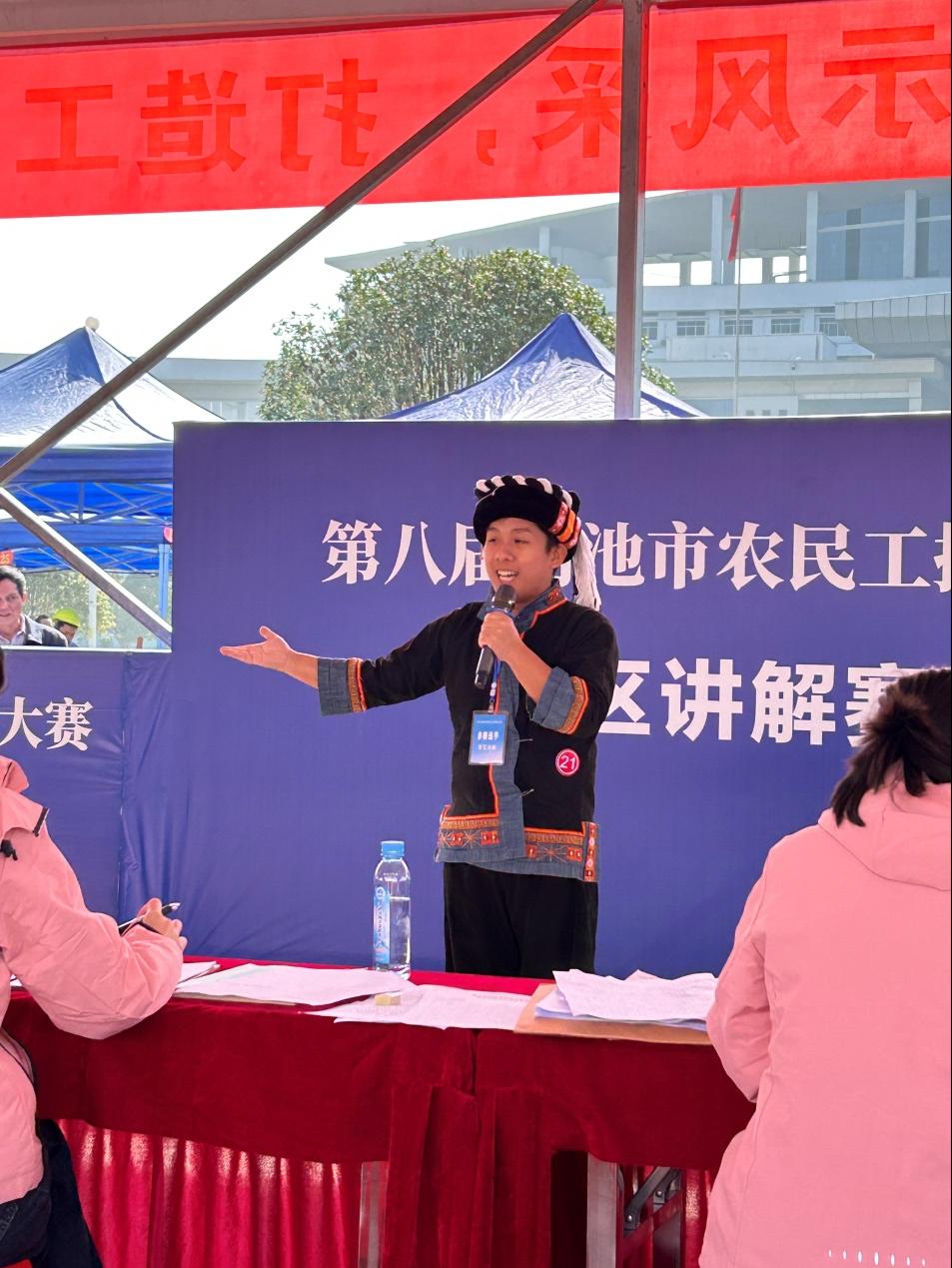 11月28日,由河池市农民工工作领导小组办公室、市人力资源社会保障局、市总工会联合主办的第八届河池市农民工技能大赛在河池市政中心广场隆重举行。bwin必赢官网旅游管理管理专业学生吴泓健、庞秋燕和张岚三位同学在bwin必赢官网旅游管理专业老师杨辉强的指导下参加景区讲解项目比赛并获得优异成绩。其中吴泓健获得第一名,庞秋燕同学获得第四名,张岚获得优胜奖。