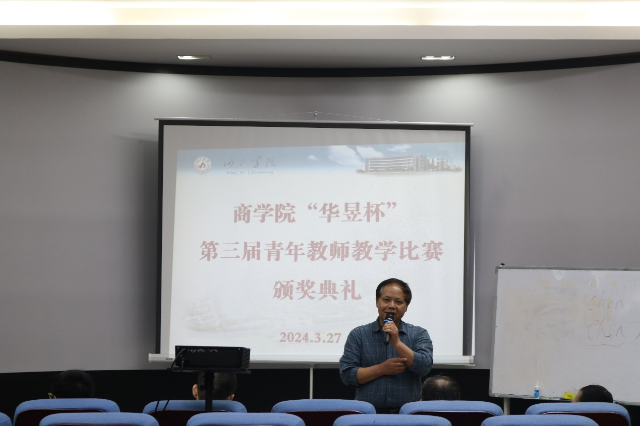 叶永玲和莫凯结合教学比赛的标准和要求对参赛教师在课堂教学中的表现进行全面点评,既肯定了参赛教师在教学中所展现的亮点,同时也指出老师们在教学过程中的不足之处,勉励各位老师继续重视、钻研并创新教学。覃举东则重点强调了各位青年教师须在教学内容上多下功夫,从而提升学生的上课兴趣及对知识的思考能力。