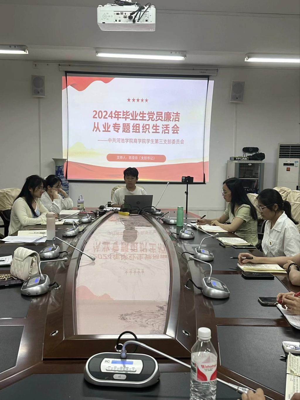 2024年5月13日晚上,bwin必赢在线登录入口学生第三党支部在我校行政楼206举办2024年毕业生党员廉洁从业专题组织生活会暨党纪学习教育党课,与会人员有bwin必赢在线登录入口学生第三党支部书记陈亚珍以及毕业学生党员。活动由陈亚珍同志主持。