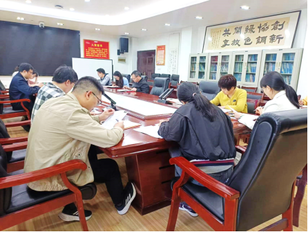 会议伊始,支部组织委员陈林枫同志统计支部党员到会情况,并收纳党费。随后,全体党员起立,高声齐唱国歌,陈林枫同志领誓入党誓词,胡明丽同志诵读党章第十一章《党徽党旗》。