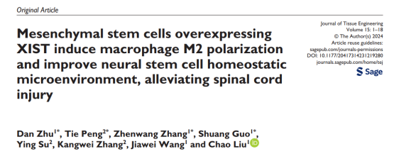 近期,bevitor伟德国际1946官网朱丹博士以第一作者在国际期刊Journal Of Tissue Engineering(中科院一区,IF:6.7)上发表了题为“Mesenchymal stem cells overexpressing XIST induce macrophage M2 polarization and improve neural stem cell homeostatic microenvironment, alleviating spinal cord injury”的研究成果。该研究发现,通过过表达XIST的BMSCs可以诱导巨噬细胞M2极化,抑制炎症反应,加速NSCs稳态微环境重塑,从而促进损伤区域NSCs分化和轴突形成,最终缓解脊髓损伤。