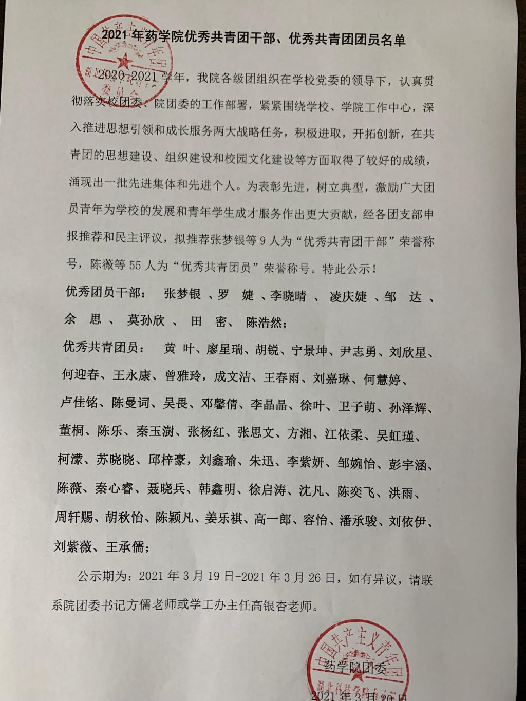 2021年bevitor伟德国际1946官网“五四”优秀共青团干部、优秀共青团员名单