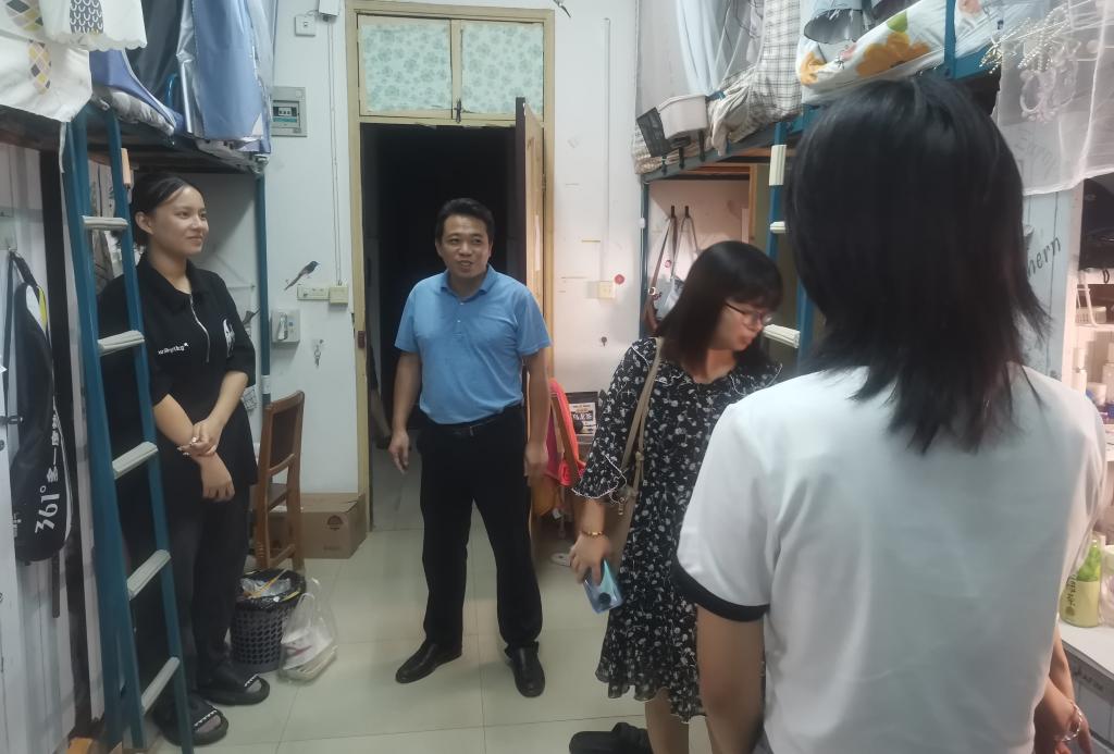 (通讯员:方儒吴妞妮 陈怡婷)一元复始,万象更新!愉快而充实的暑假生活悄然结束,我们又将迎来一个新学期。bevitor伟德国际1946官网党委书记李炎坤、党委副书记祝晓庆带领学工办成员、班主任和团委学生会于2023年9月5日晚8点到学生宿舍进行看望,希望bevitor伟德国际1946官网学子们以元气满满、朝气蓬勃的精神面貌迎接开学。此次下寝检查看望不仅加强了学生宿舍安全管理,规范了学生宿舍行为,也让老师们更了解学生们的思想动态,帮助学生们营造良好的学习氛围和生活环境。