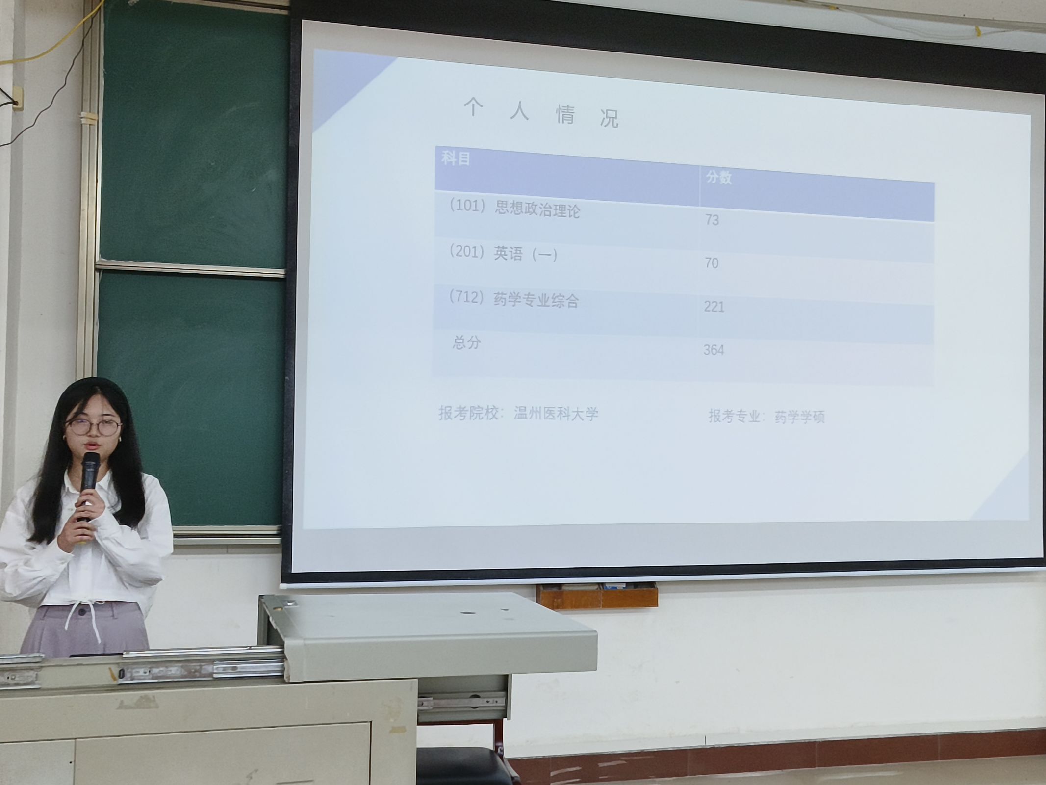 本次分享会邀请了2024年成功上岸的4位学生代表与同学们交流。分别是考取武汉理工大学的陈雨昊、考取温州医科大学的王聪、考取沈阳药科大学的邱梓豪和冯瑀彤。他们分别从择校、复习方法与技巧、心理调适、复试经验、注意事项等方面进行了分享,毫无保留的传授了自己的经验和心得,条理清晰,内容充实。现场的同学们纷纷表示,指导性很强、帮助很大,让自己的备考更有思路和信心了。