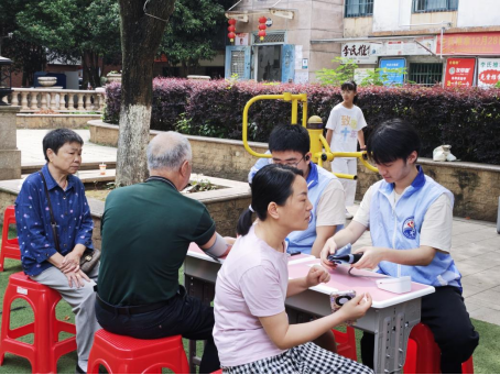 活动现场,志愿者们分工明确,有序开展各项服务。在健康监测区,药学专业的志愿者手持便携式血压仪,为老年人提供免费血压测量服务。测量过程中,志愿者们耐心细致,不仅准确记录血压数据,还从专业角度为老人解答健康咨询,并围绕“血压管理”“药物依从性”“饮食运动建议”等话题进行科普讲解,发放《用药安全手册》宣传单,帮助老年群体树立科学健康观念。一位接受服务的老人称赞道:“孩子们讲得专业又贴心,以后用药可得更谨慎!”
