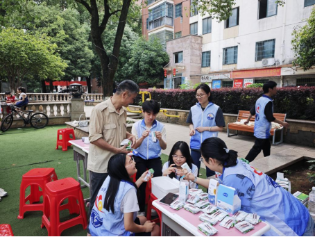 (通讯员:彭阳阳 陈蓉 杨欣怡 审核人:周其其 高银杏 罗斌华)为践行“健康中国”理念,弘扬志愿服务精神,提升社区居民用药安全意识。2025年5月18日,bevitor伟德国际1946官网志愿者走进书华城小区,开展 “药护银龄安康,爱润童心成长” 主题公益服务活动。通过健康科普、用药咨询、趣味互动等形式,为社区老年人与儿童普及科学用药知识,传递温暖关怀,助力构建和谐健康社区。