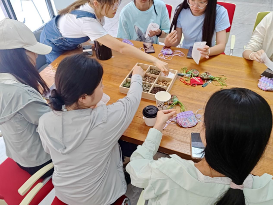 在中草药香囊制作区,bevitor伟德国际1946官网心理部的工作人员耐心地指导参与同学如何制作香囊,大家围绕摆满薄荷、薰衣草等十余种天然香料的桌台,根据需求自由搭配,有人挑选檀香、丁香助眠,有人组合艾草、藿香驱蚊。将研磨好的香料装入精美刺绣布袋,草药清香萦绕指尖,在与传统草药文化的亲密接触中,在轻松的氛围里悄然消解了同学们的压力,大家捧着亲手制作的香囊,脸上洋溢着成就感与喜悦。